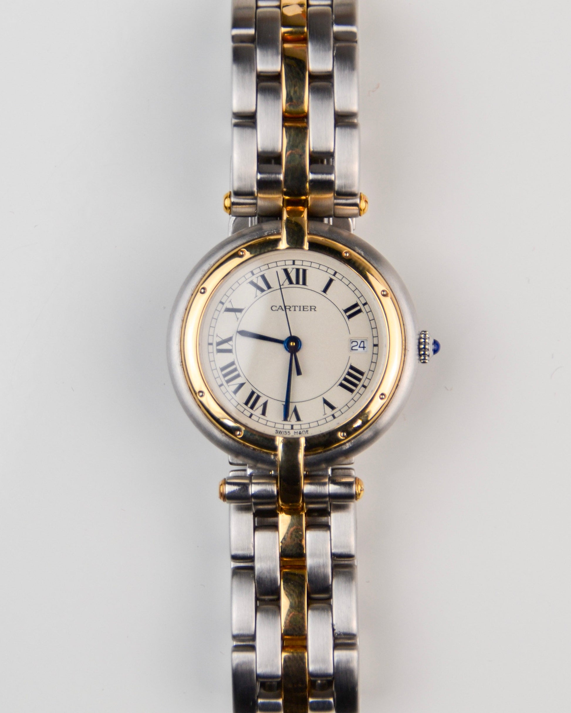 This piece is in excellent condition and had a complete service at Cartier in February 2026. The dial was also replaced and the piece lightly polished. It comes with original box and papers (1997)